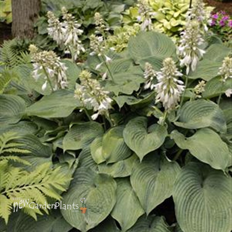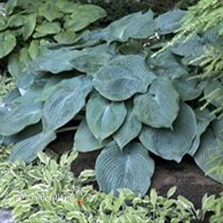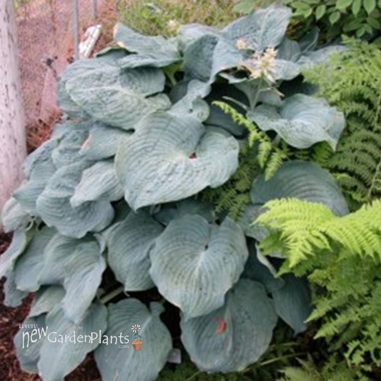 Can grow 5 foot wide! Heavy thick blue leaves Huge mounding habit Slug resistant Light lavender flowers Aden (1986) [Giant]