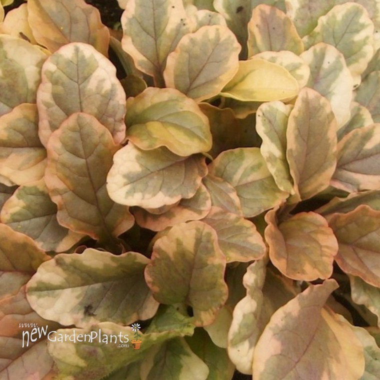 Creamy white, green and yellow tones on its spreading foliage