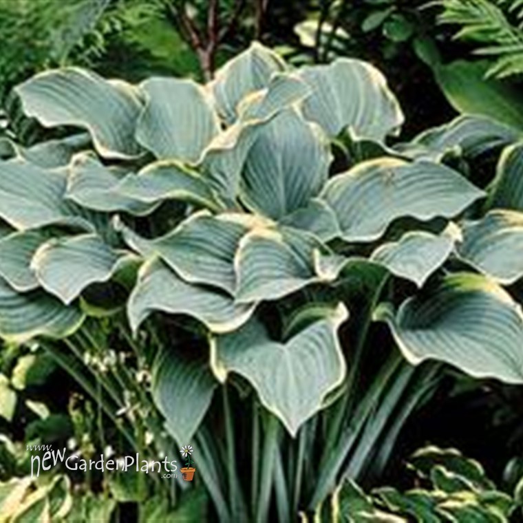 Frosty blue leaves w/ wavy, narrow, creamy yellow-Ivory margins