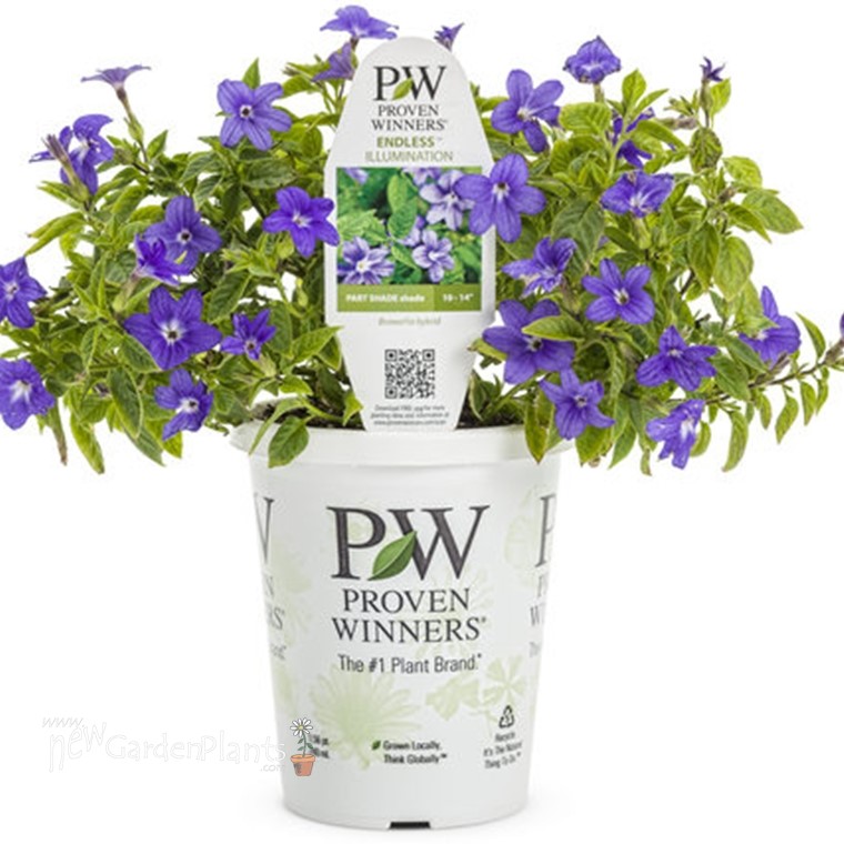 Brilliant violet purple blooms dot the emerald green foliage all season long without deadheading