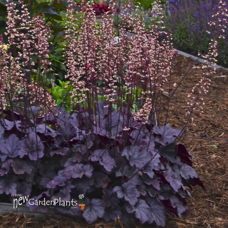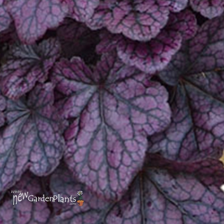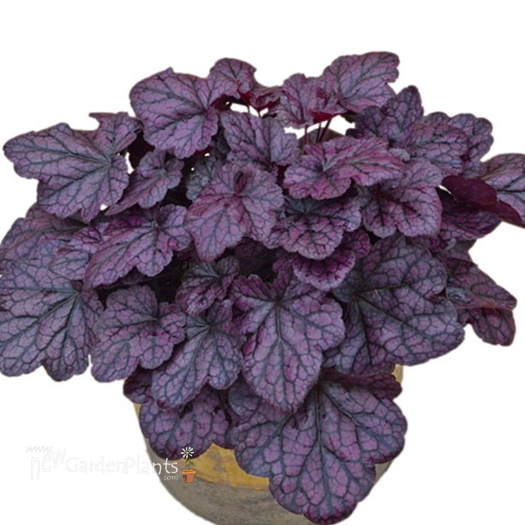 Forms dense, upright mound of broad, thick, and durable vibrant grape purple leaves w black veins