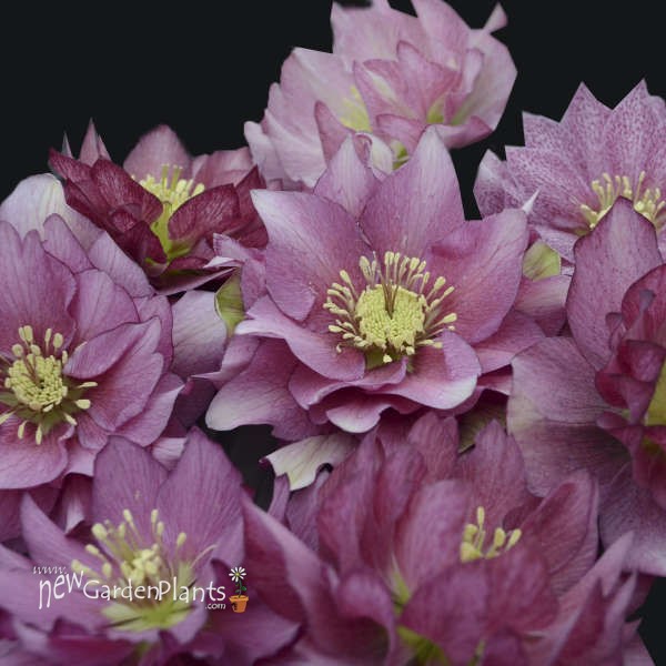 Helleborus ‘Maid of Honor’ ranges in color from light to dark pink, bearing 2-3” double flowers.