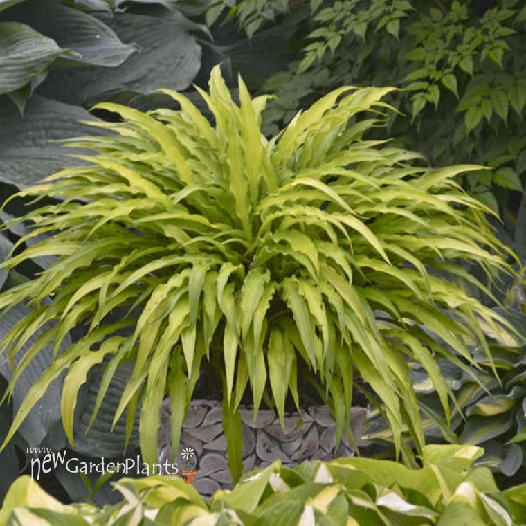 Irresistible miniature to small sized hosta is the perfect accompaniment for bright blue hostas, specially when planted together in containers or near the front of the border