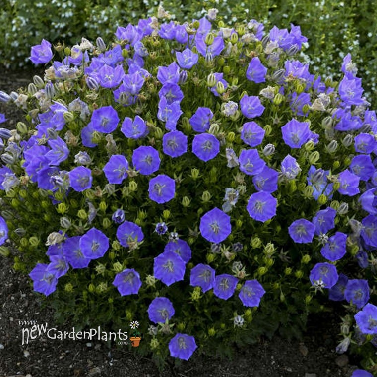 1.5-2in cup shaped, violet blue flowers and dark green foliage