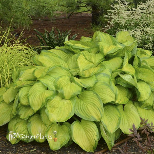 Huge, 10.5" long, brilliant gold leaves with wide, dark green margins