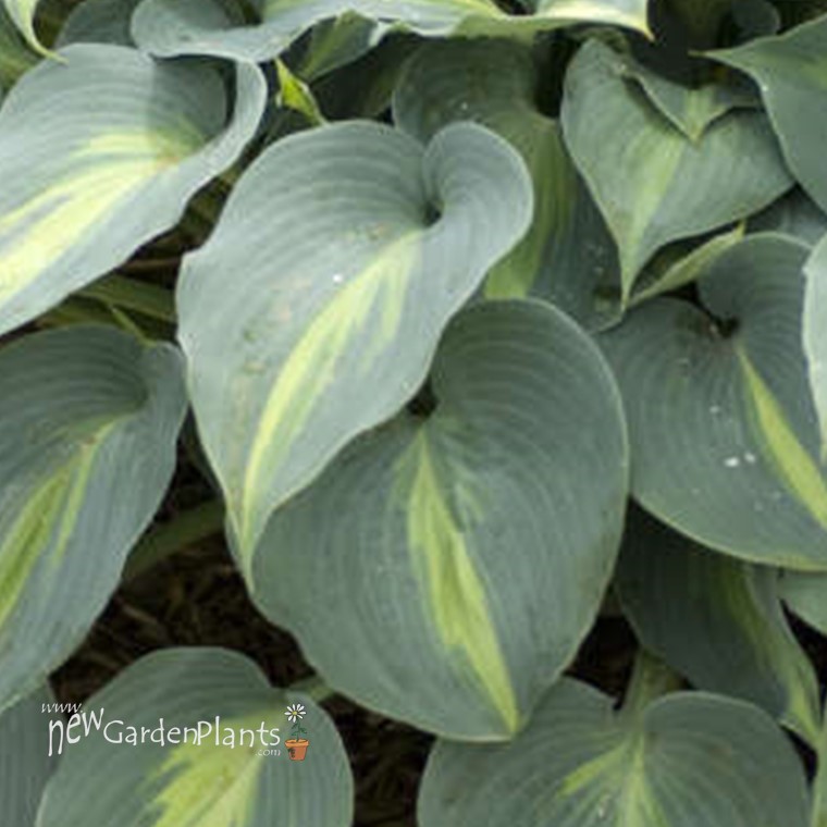 Intense blue leaves are set off by the striking chartreuse to yellow center and green jetting between the center and the margin