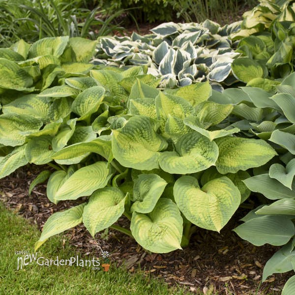 Thick, heavily corrugated and puckered leaves are green with a brilliant gold center