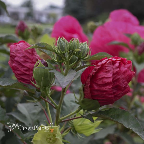 Deep red buds open to 7-8” hot cerise red flowers