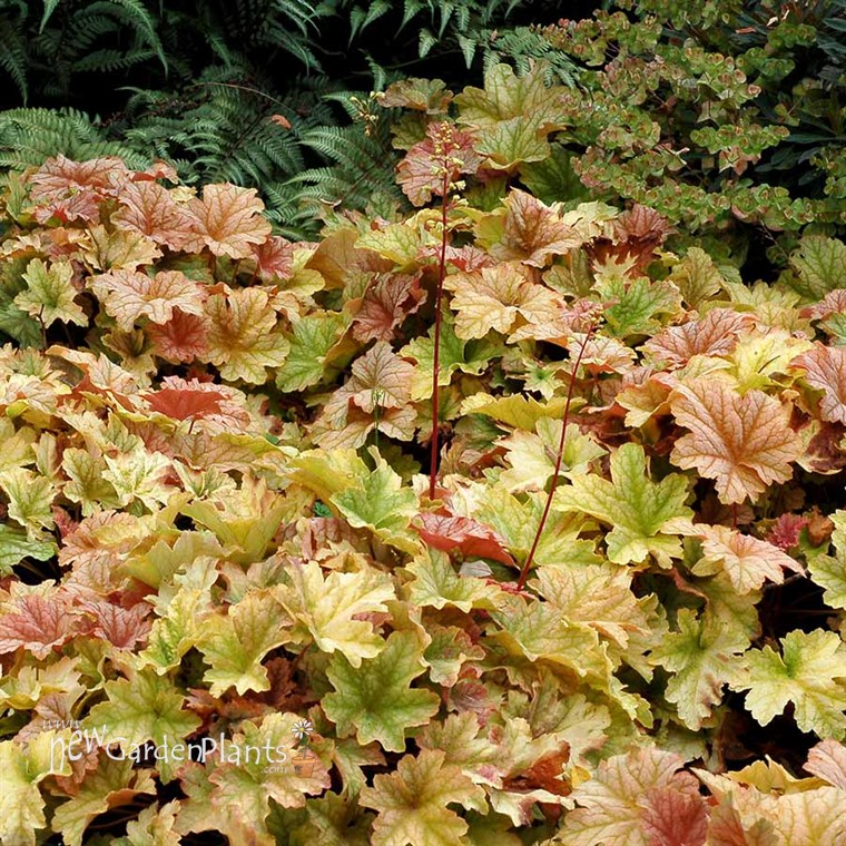 Short maroon stems with wands of creamy yellow green complement the foliage