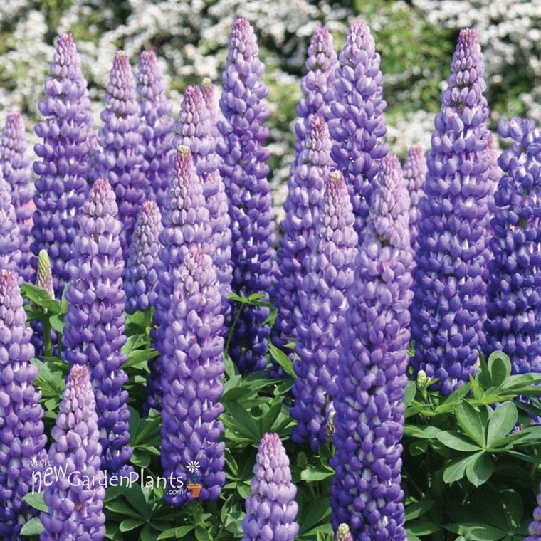 Sturdy spikes feature blooms of periwinkle blue and white petals