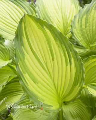 Dancing Darling is a beautiful hosta with pointed, deeply veined leaves that emerge brilliant yellow in the spring, while edged by a deep green, heavily ruffled margin. A little morning or late afternoon sun helps keep the yellow leaf centers from turning chartreuse.