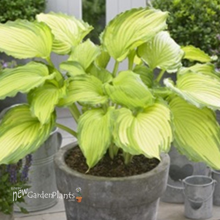 Hosta Dancing Darling is a beauty with its unique yellow-golden foliage with green edges. The foliage is curled and looks lovely in combination with the lilac flowers. Plant Dancing Darling in a moist, cool, humus-rich and well-drained soil. It can be planted in a sunny or shaded spot. Dancing Darling can grow to 15” – 20” tall and 24” wide