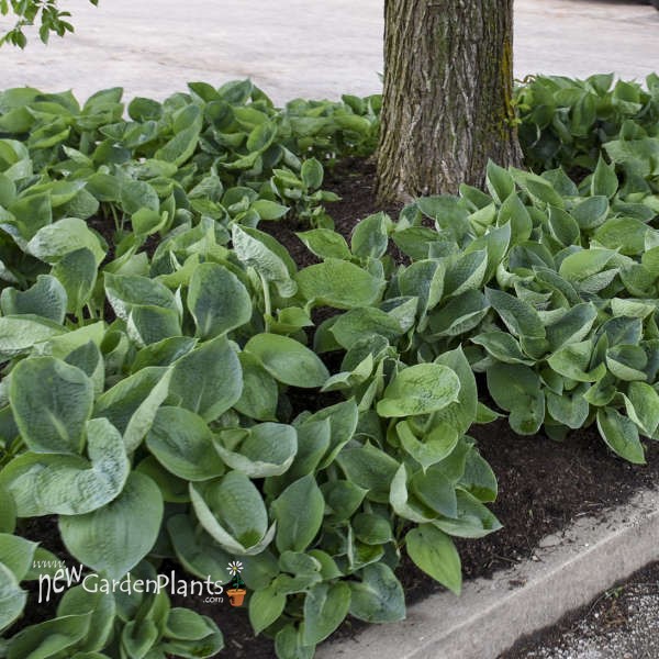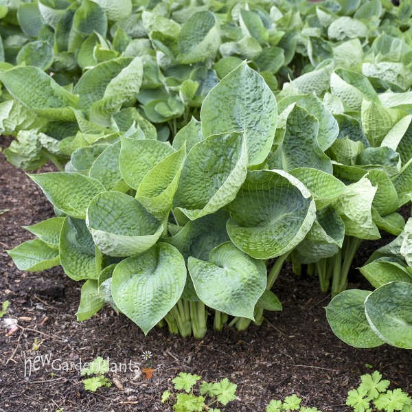 Dark blue-green, seersuckered leaves with heavy substance display a unique cupped form up to 3" deep