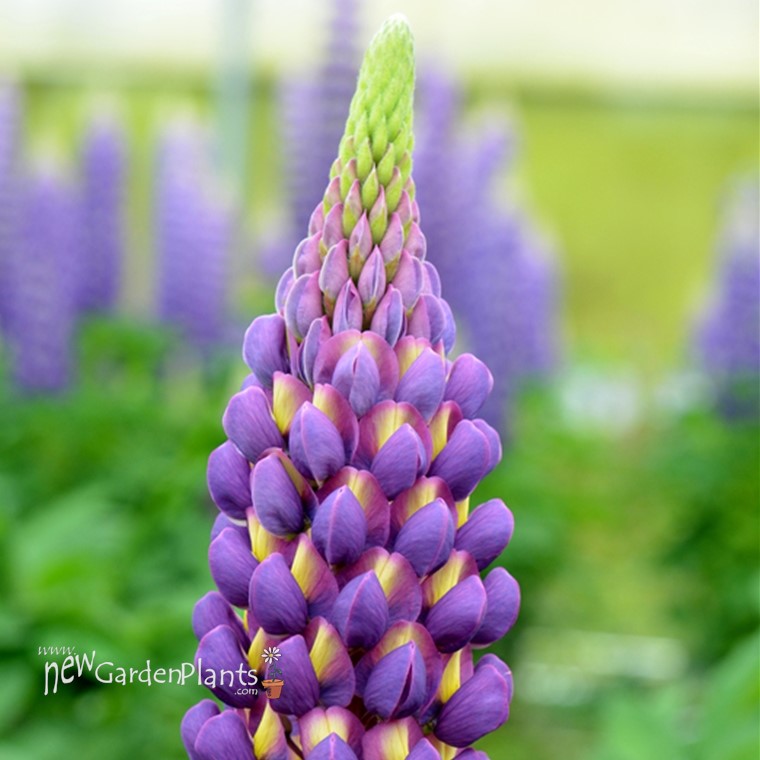 Large, upright spikes of densely-packed purple flowers with yellow markings