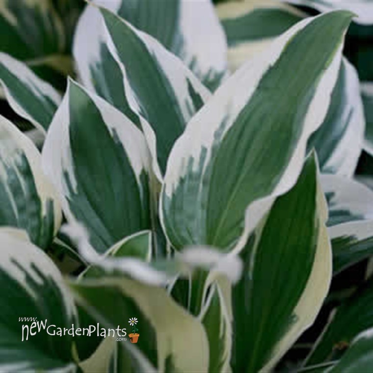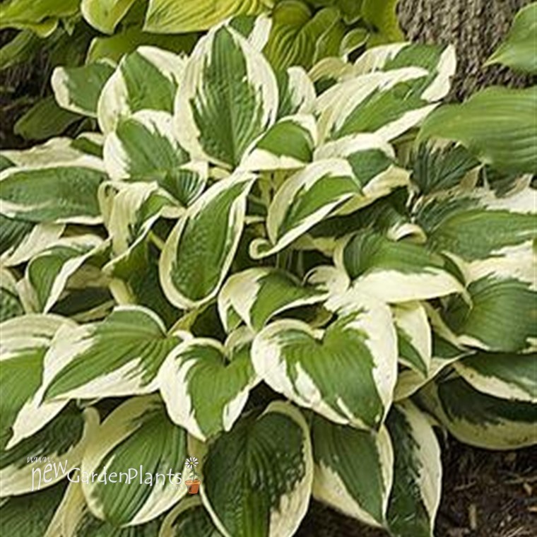 Dark green leaves w/ wide, crisp white margins Sun tolerant Lavender flowers Popular award winner Showy white edged hosta Machen (1991) [medium]
