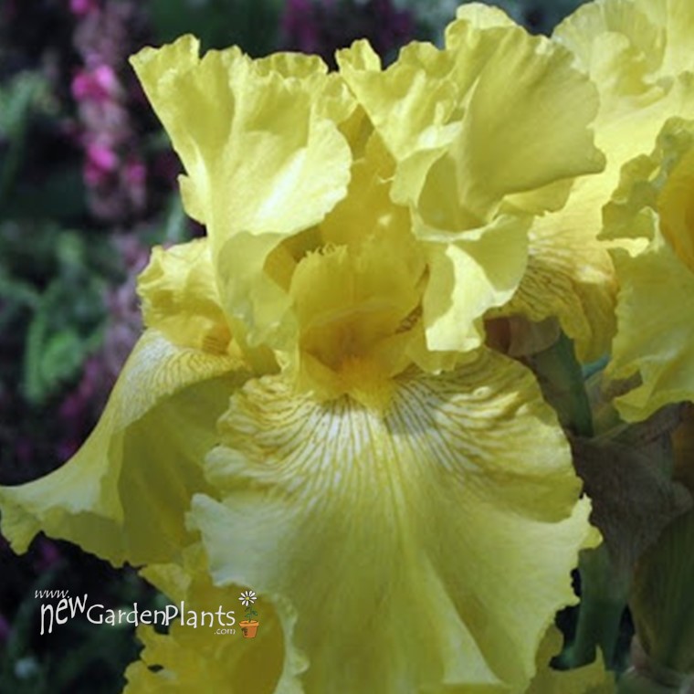 Blooms vary from creamy straw to light yellow to medium yellow with a variable greenish ecru influence and dark brown lines at hafts to just below yellow beard Ruffled Slight sweet fragrance Rebloomer