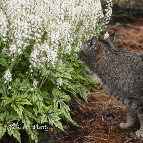 Woodland perennial has finely dissected green leaves with a dramatic dark burgundy center and a nicely rounded habit