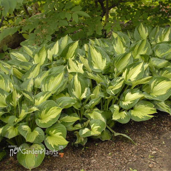 In spring, the leaf center is creamy white with greenish veining, then turns light green by midsummer, and finally dark green in late summer
