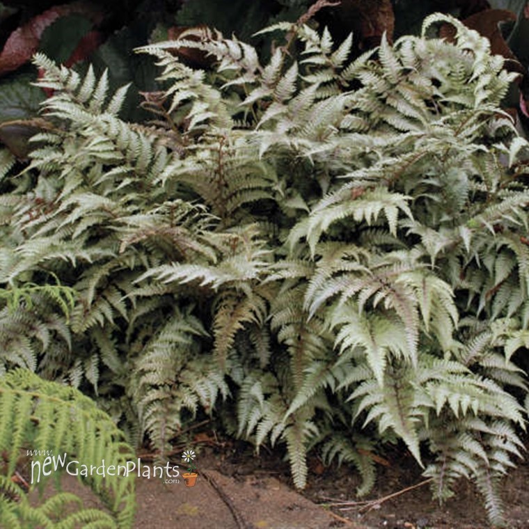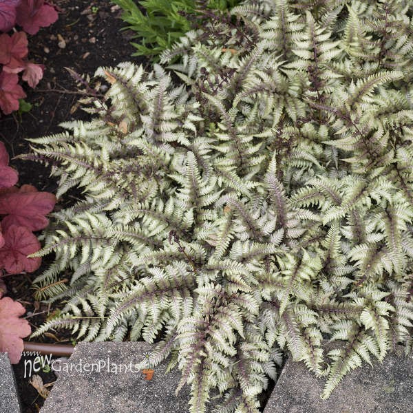 One of the most colorful ferns for the garden, the Japanese Painted Fern has silvery-grey fronds which are dusty purple towards the center. They are set off by the purplish-red veins and stems.