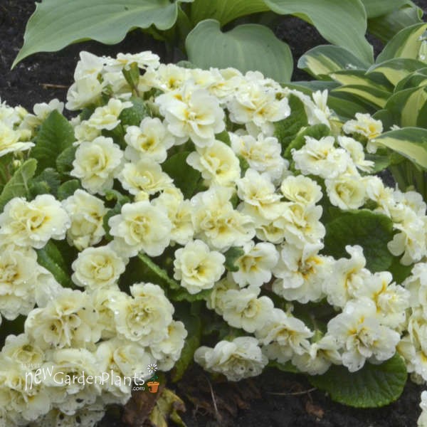 Sizable double blossoms in a rainbow of colors bloom profusely throughout the spring season atop the compact, bright green foliage