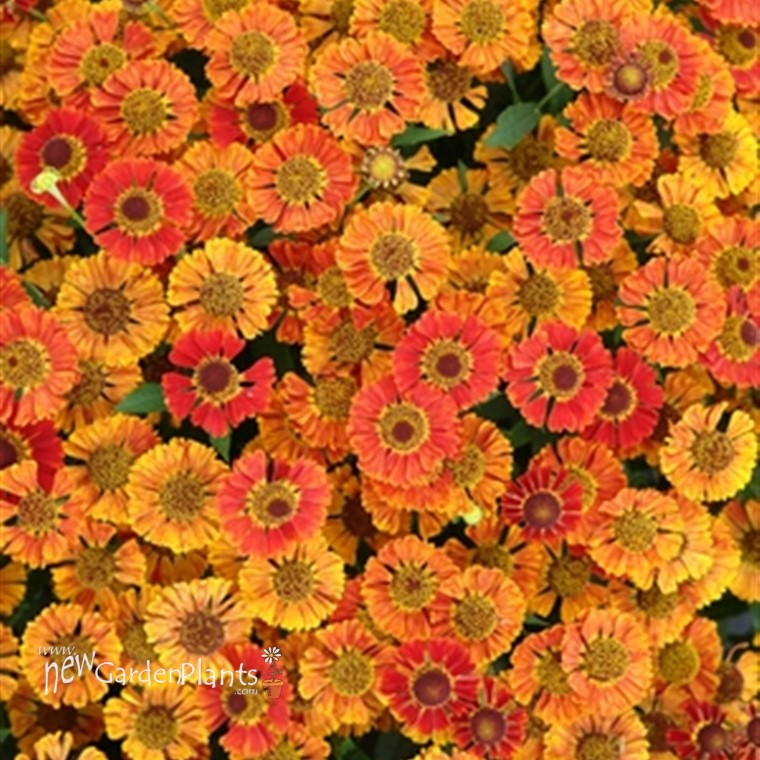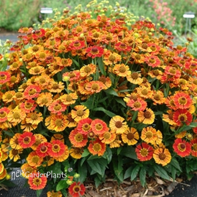 Dense, compact and tidy habit will be COVERED with bright red blooms that age to shades of orange and yellow from late summer through fall