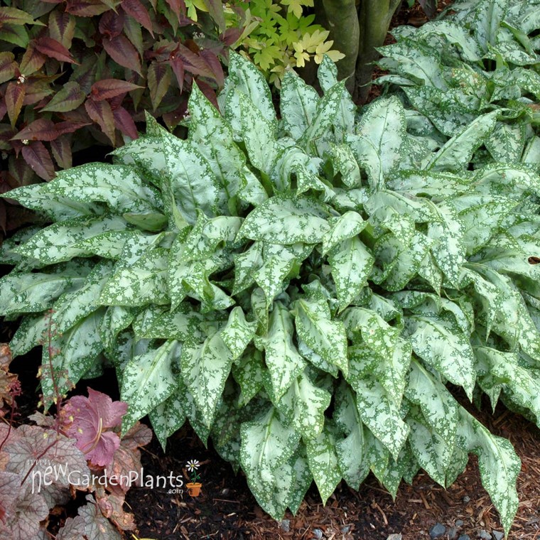 Wavy, spear shaped leaves are dark green, infused with melting silver