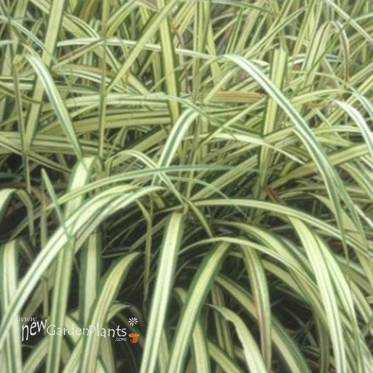 Ribbon-like foliage dons creamy-white centers flanked by dark green margins