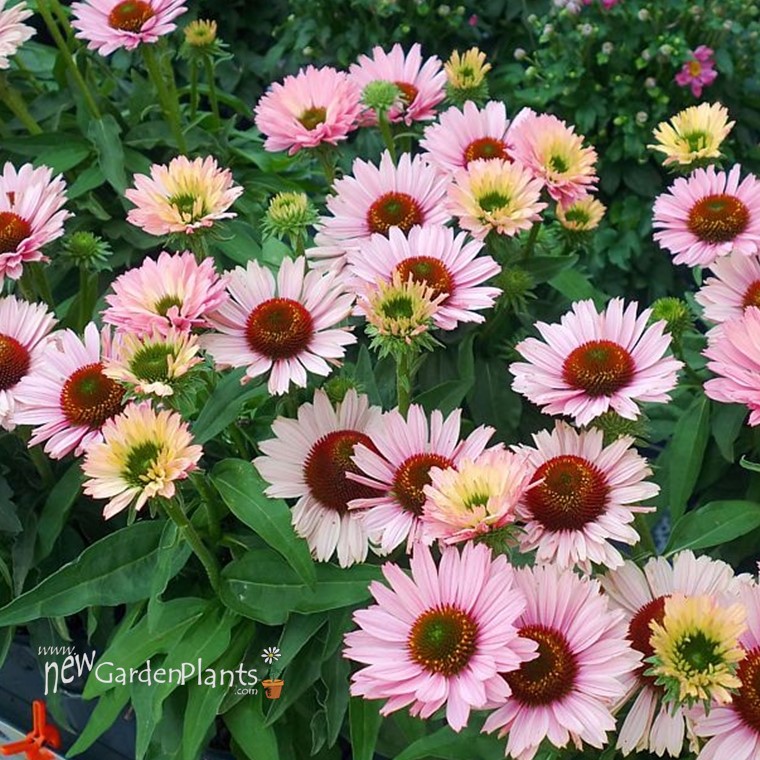 SunSeeker Coneflowers have exceptional vigor, masses of flowers, and dense habit with short stems and dark green, narrow leaves