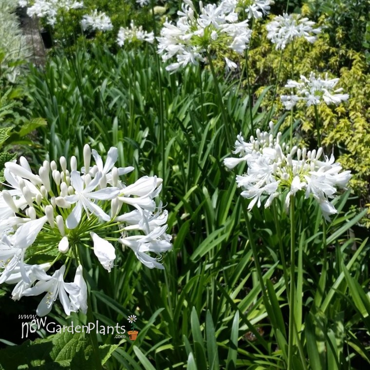 The White Superior Agapanthus has clusters of white tube shaped flowers atop tall stems. White Superior is great in containers, or planted in mass for a dramatic vertical accent