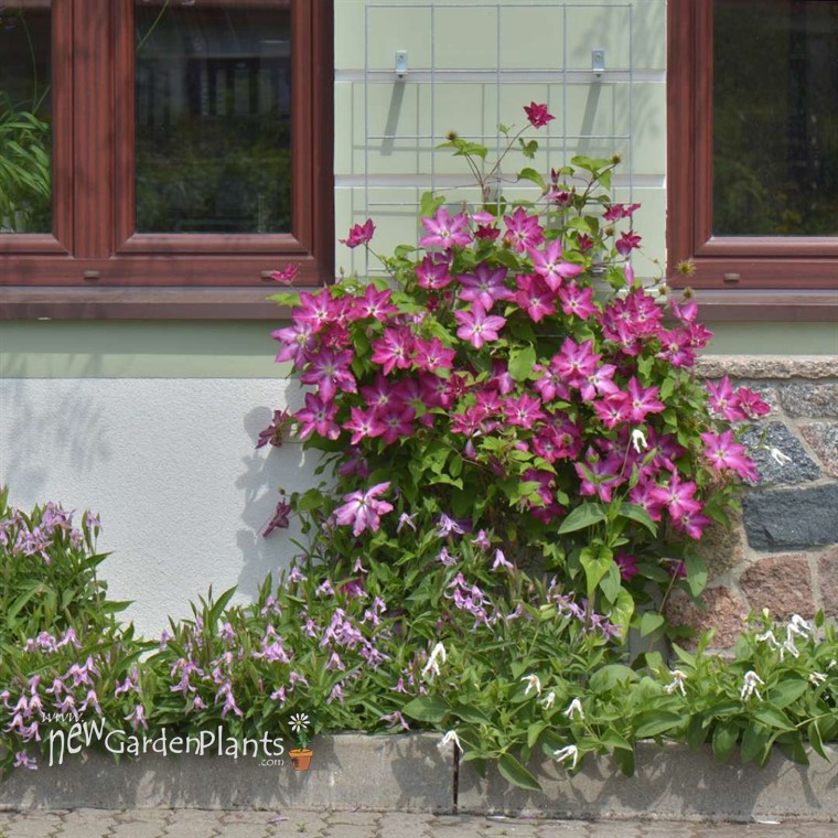 Named because it shares the colors of the Polish flag, 'Viva Polonia' is a cheerful, easy growing, large flowered clematis