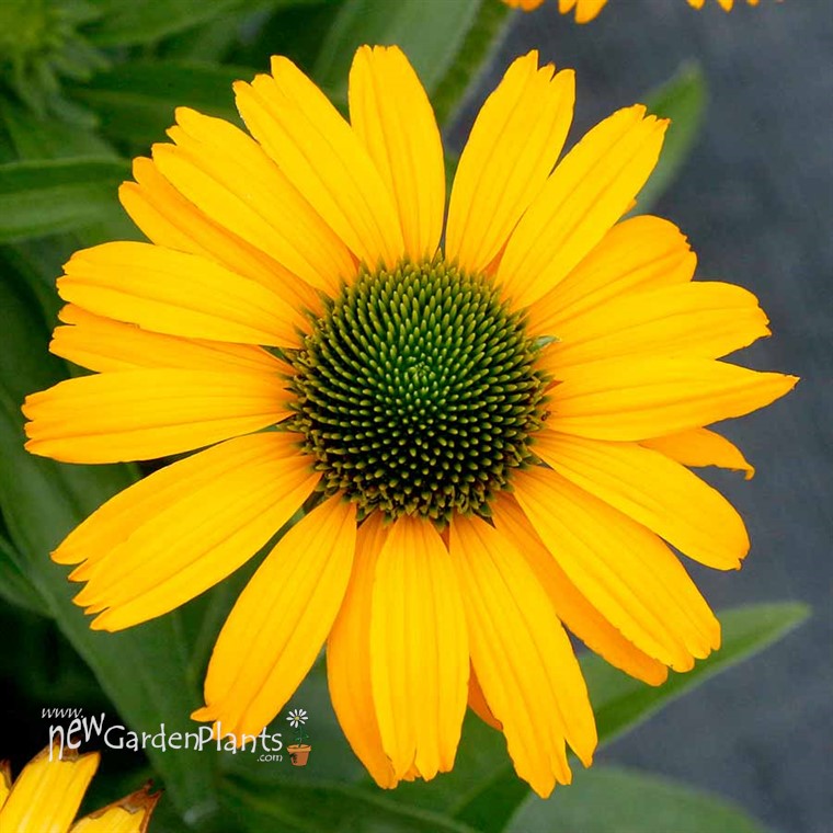 Dazzling bright golden yellow blossoms on verdant bright green foliage are complemented by an emerald green shifting to sunny yellow cone