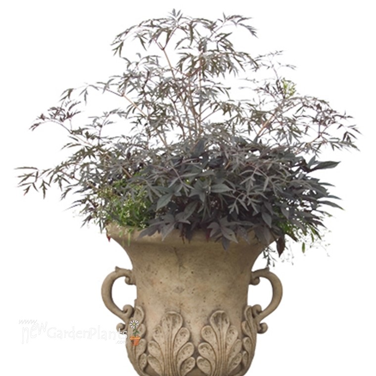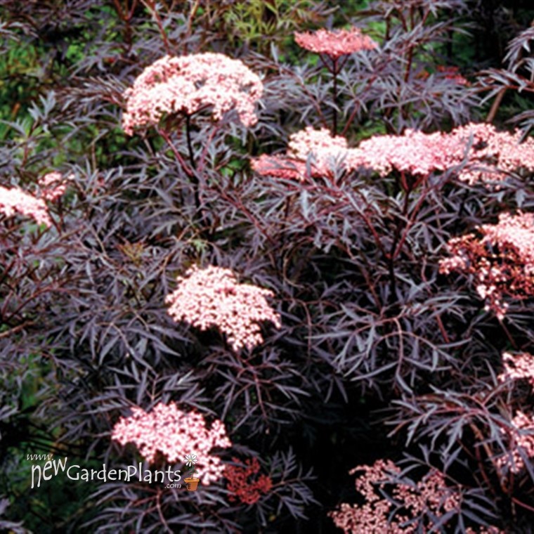 Lacy purple-black foliage is reminiscent of a weeping Japanese Maple