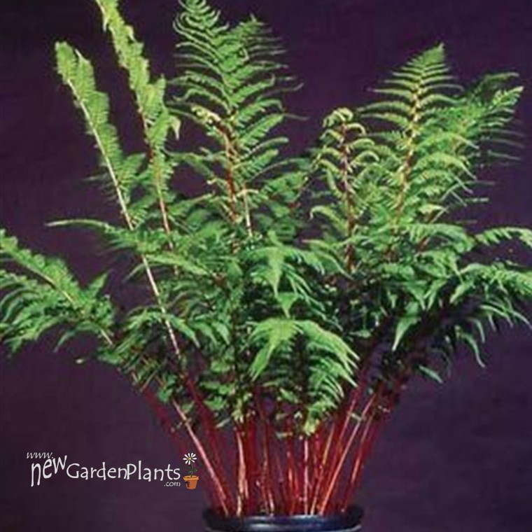 Vibrant, deep burgundy stems holding true green, ferny foliage