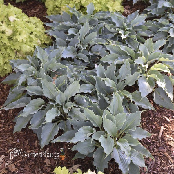 Blue, rippled leaves look like water splashing in the shade garden, and hold their blue color well into the summer season