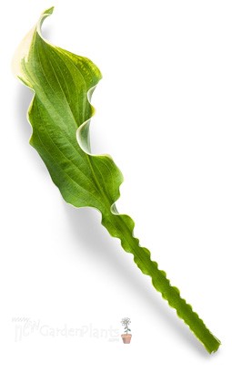 Extremely ruffled leaves are ruffled all the way from the crown to the leaf tips